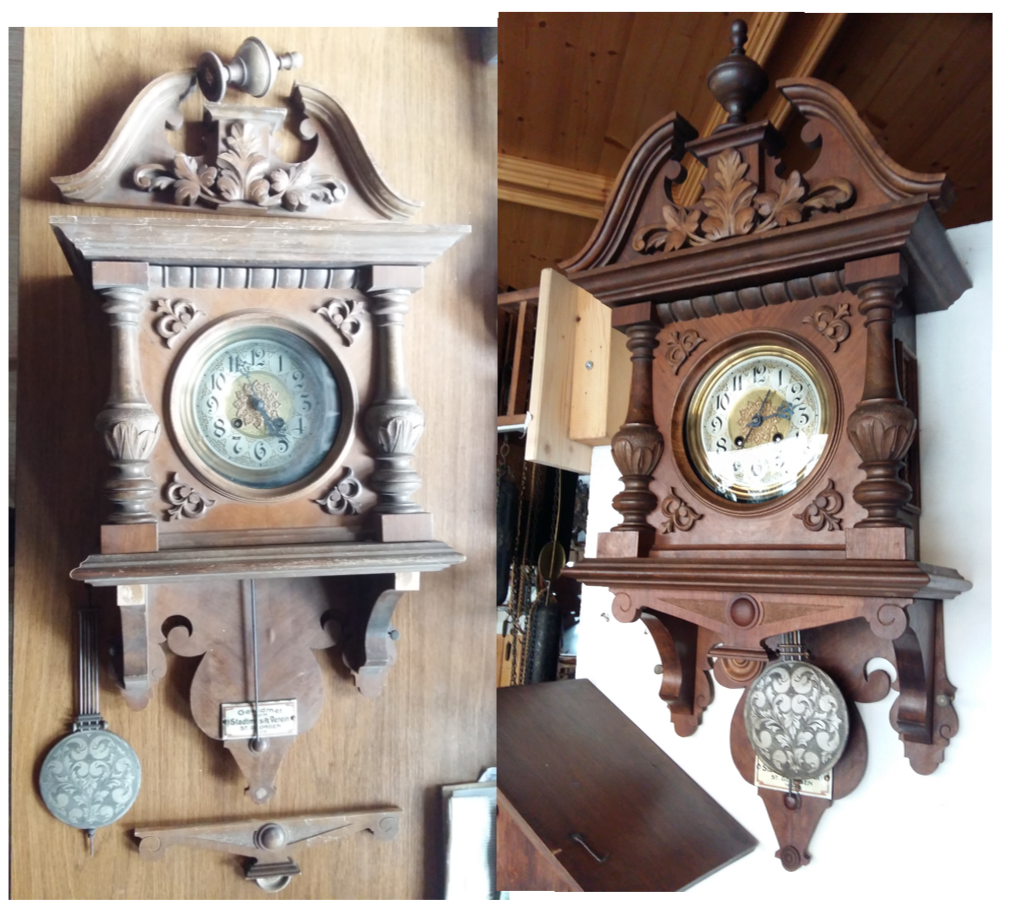 Mein Uhreninteresse begann schon in meiner Kindheit. Neben der Schule lernte ich über Jahre hinweg bei zwei privaten Uhrmachern, kaufte auf Flohmärkten Uhrenfragmente zum Basteln und gewann Erfahrung im Umgang mit Uhrwerken.2014 besuchte ich das erste Mal die Antikuhrenbörse Eisenbach, deren Ausrichtung ich inzwischen übernommen habe. Hier wurde mein Interesse für Schwarzwald- und Kuckucksuhren geweckt und ich erlernte die Feinheiten deren Restaurierung.Mein Produktdesign-Studium war technisch geprägt und die optimale Ergänzung meines Uhreninteresses: Das Praxissemester absolvierte ich bei einer Uhrenfabrik, die auch mein Partner für die Bachelorarbeit wurde.Mittlerweile betreibe ich eine offene Werkstatt im Uhrensaal des Hotel Bad in Eisenbach, einem pittoresken Schwarzwaldort mit reicher Uhrmachertradition. Hier führe ich Komplettrevisionen an allen Arten mechanischer Großuhren von Wecker bis Turmuhr, von antik bis neu durch. Inklusive Lager- und Federtausch, Balgbelederung usw. auch bei komplizierten Werken mit kalendarischen Angaben, Viertelschlag oder Schnecke und Saite.Dank meines großen Ersatzteillagers und Netzes an Sammlern, Händlern und Restauratoren kann ich fast grenzenlos fehlende Teile, Appliken oder ganze Uhren nach individuellen Wünschen vermitteln. Für Beratung, einen Kostenvoranschlag, Verkauf oder der Suche nach etwas ganz Bestimmtem, kontaktieren Sie mich!